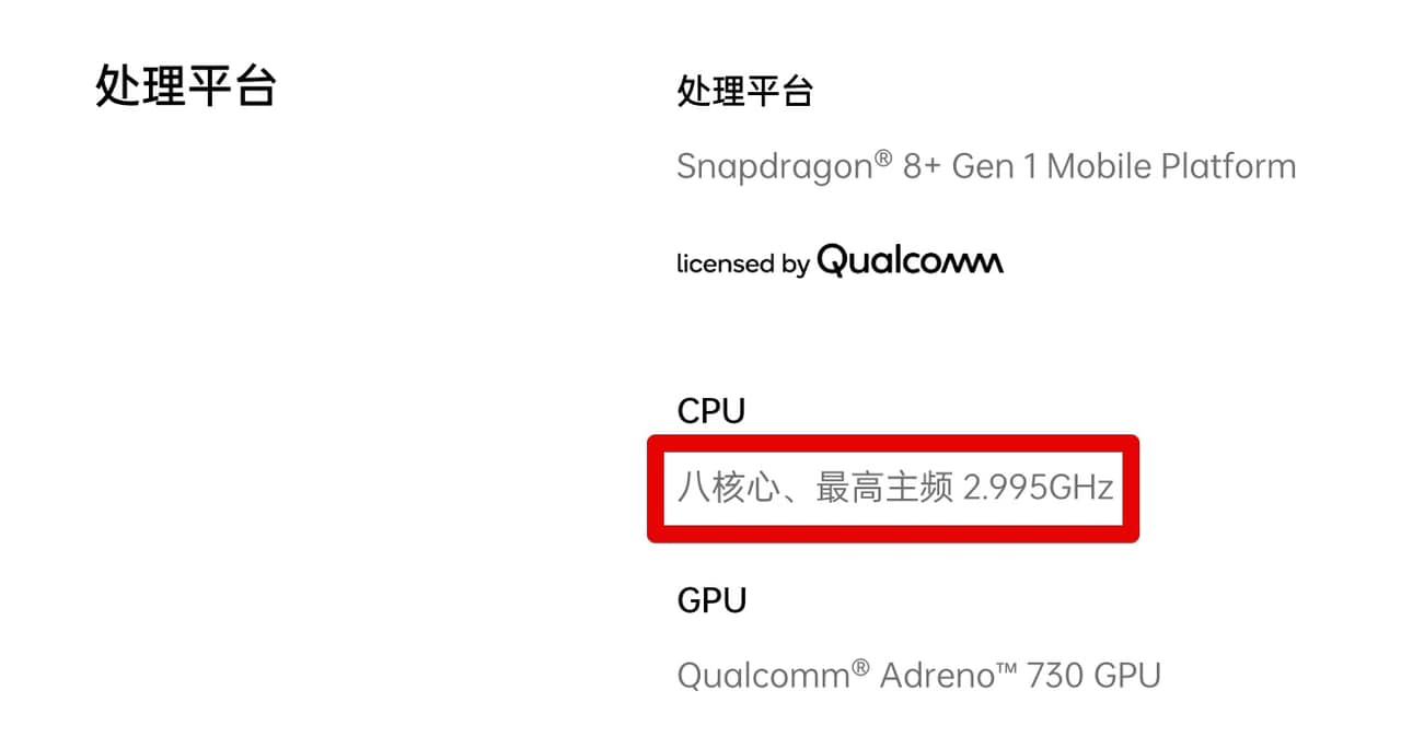 これって「+無し」のSnapdragon 8 Gen 1と同じ周波数だよなー、Snapdragon 8+ Gen 1って3.2Ghzだもんなー、誤記かなー?って思って調べていたら公式サイトにこんな注意書きがありました。