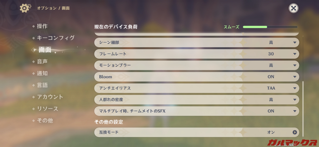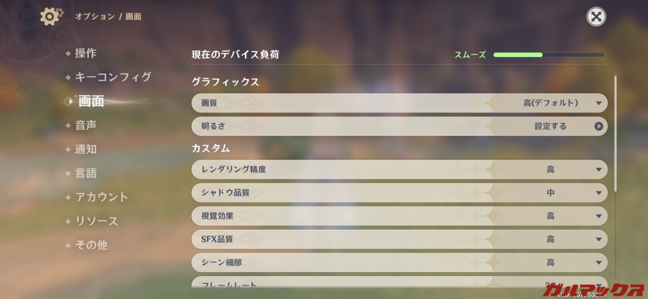 ▼グラフィックのデフォルト設定は「高」となっていました。↓