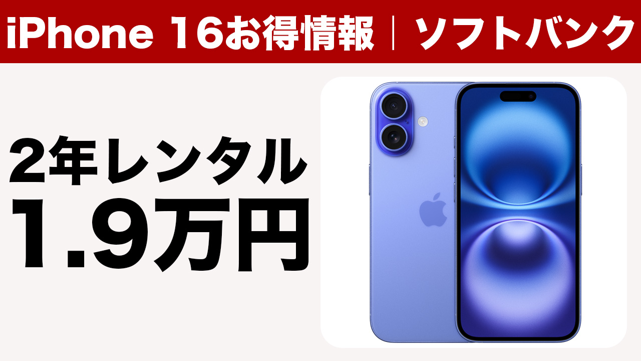 ▼以下は現在のソフトバンクのiPhone 16 128GBモデルの価格。新規契約でもMNP乗り換えでも2年レンタルで月額785円、合計で18,840円。↓