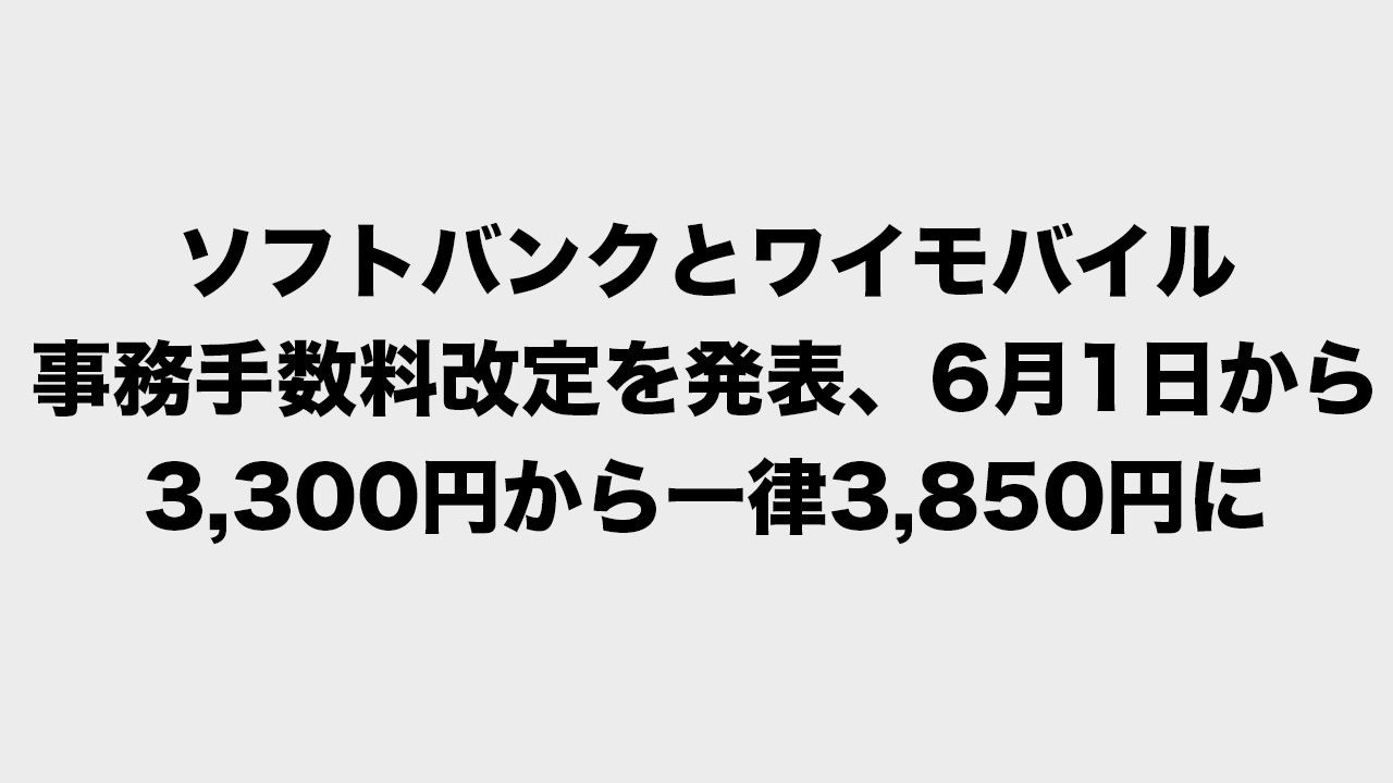 少し前にKDDIが事務手数料の値上げを発表していて、他社も便乗値上げするんじゃ・・・と思っていたんですけど、やっぱり来ました。ソフトバンクとワイモバイルも6月1日から一律3,850円になるそうです。
