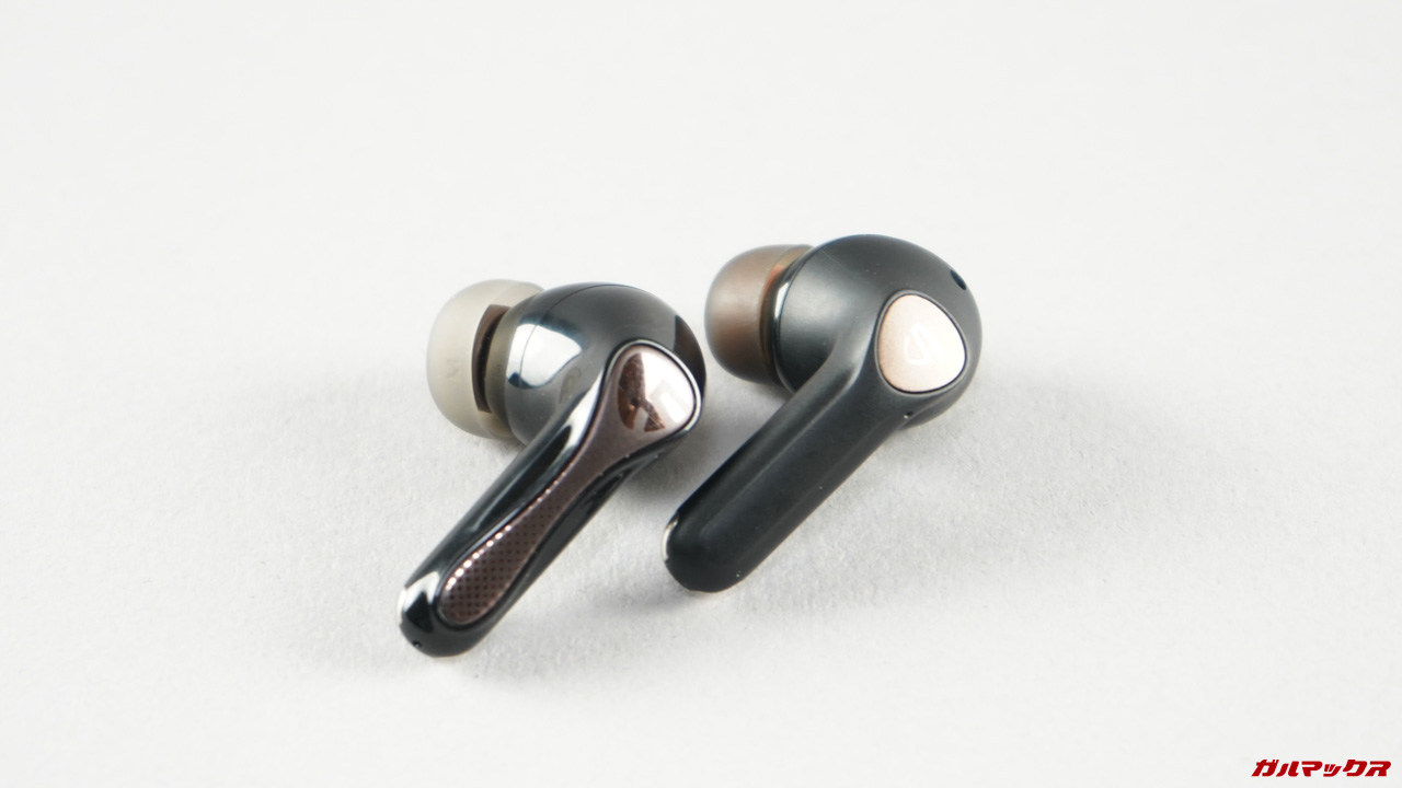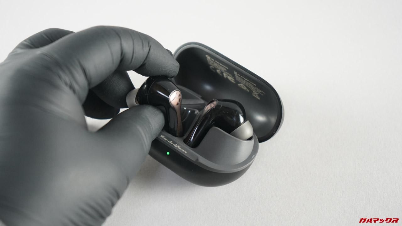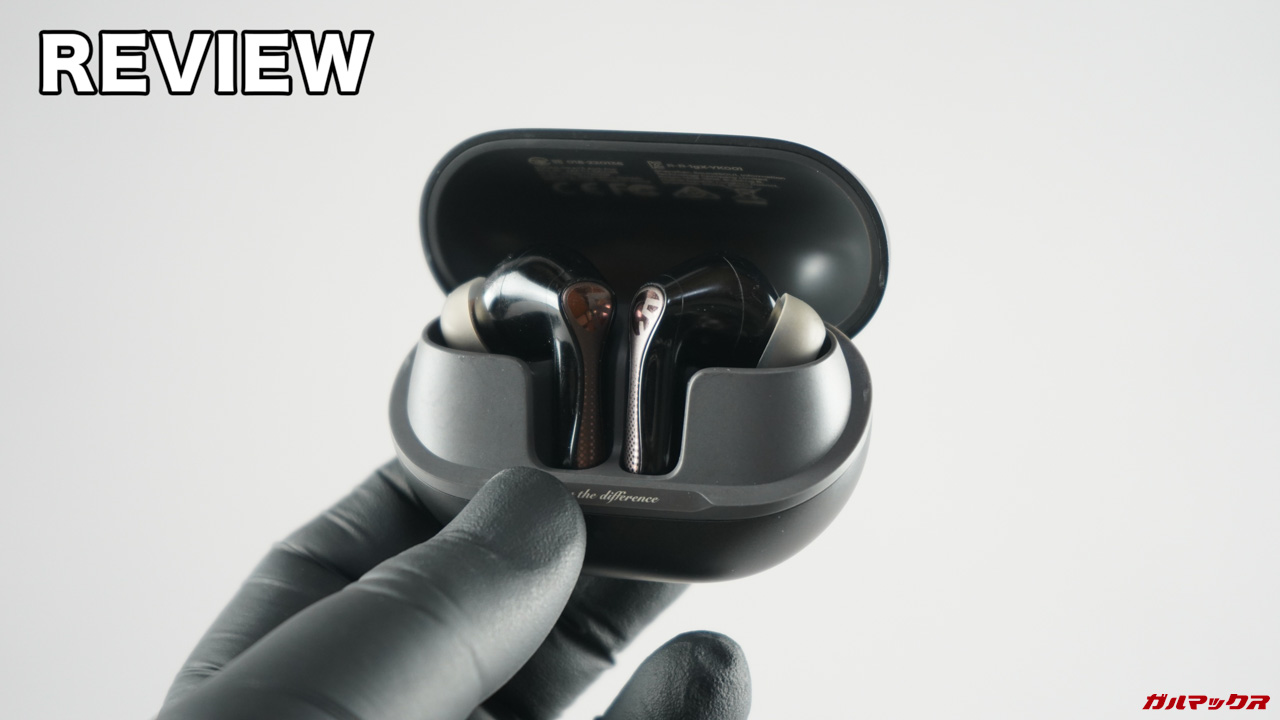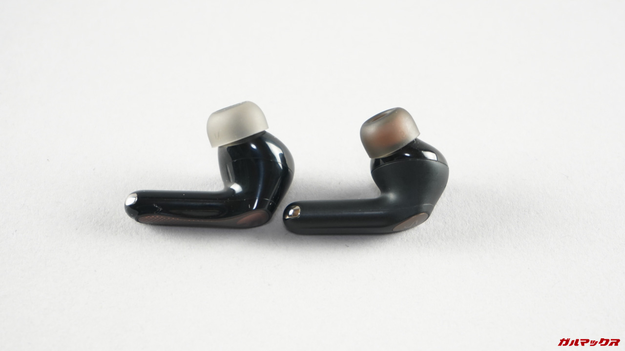 イヤホン自体の大きさはAir4 Proから若干大きくなっていました。またAir5 Proは側面にも装飾が施されていて高級感もアップしております。