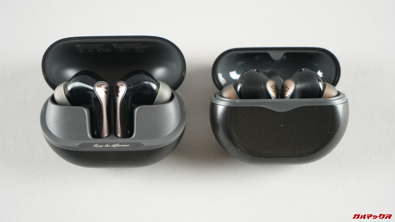 ▼ケースは前モデルのAir4 Proと比べて蓋の開く位置が変わってます。左がAir5 Proで右がAir4 Pro。↓