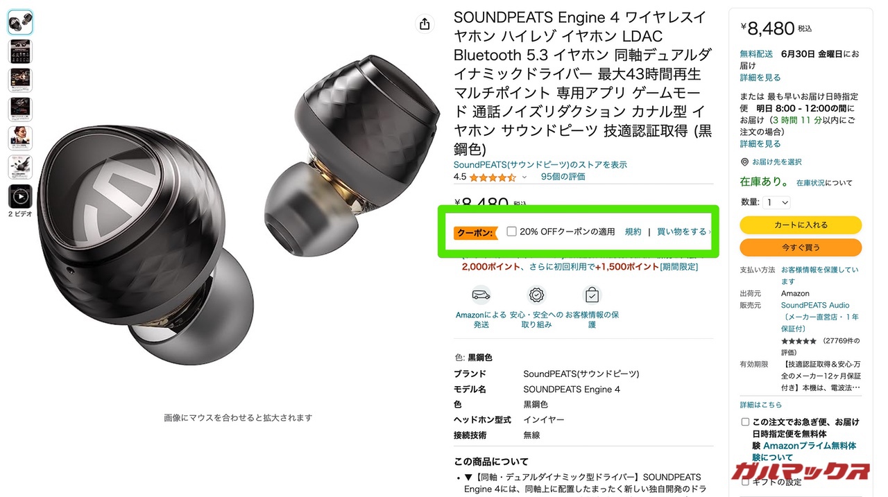上記の①と②を適用することでAmazonのクーポンとガルマックスのクーポンのダブル割引価格で購入可能となります!
