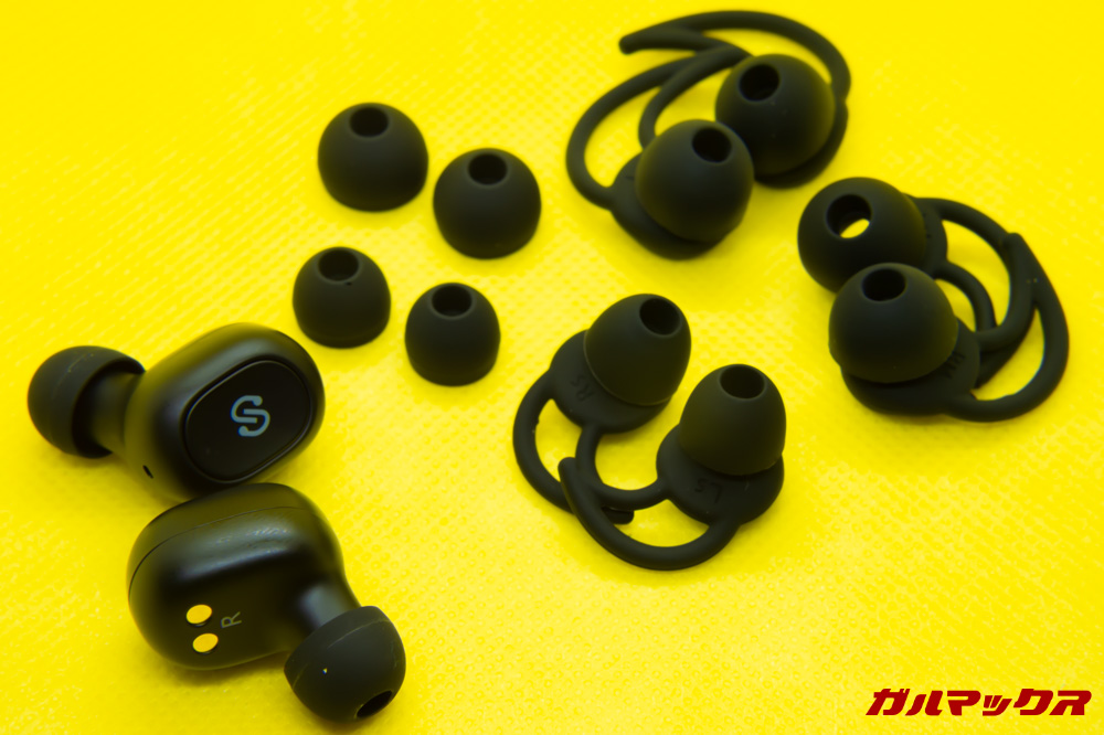 フィット感を生むイヤーピース3種とイヤーフック3種が付属