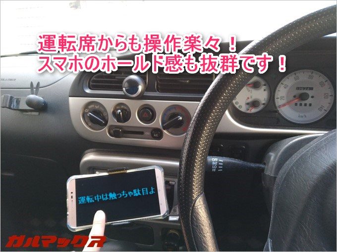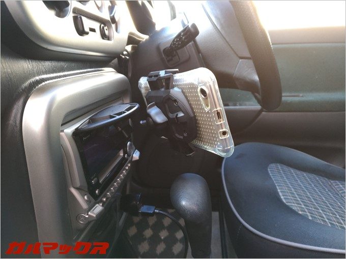 ▼最大5.8インチまで対応しているので、5.5インチ(カバー付き)も余裕。iPhone7Plusのカバー付きでも楽勝で搭載出来ます。これだけの大きさがあるスマホを搭載しても走行中に動くことが無かったので、ジョイントのホールド力も強力。↓