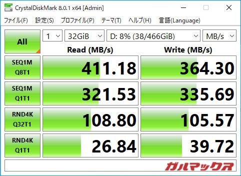 ▼僕の用途よりも多い32GBの読み書きテストではこんな感じでそこそこ公表値に近い速度がでてます。↓