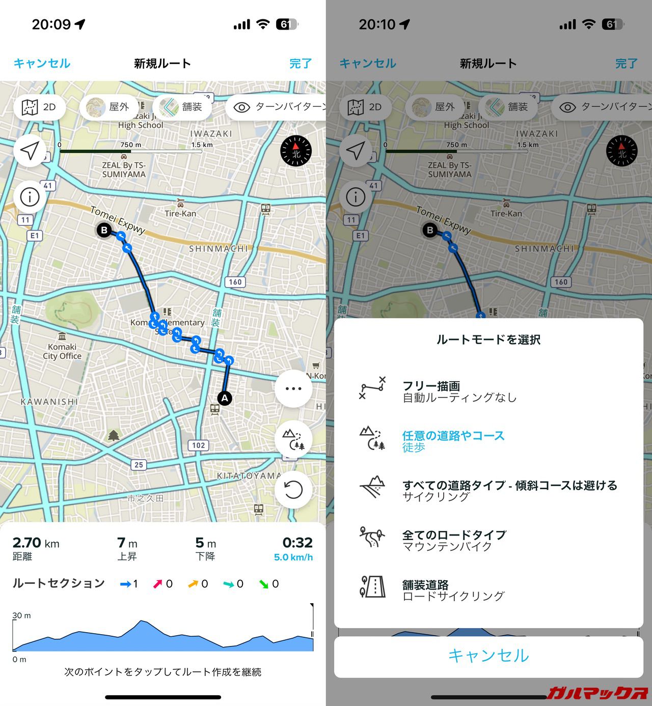 ▼ストイックに使うなら自由にルートを選べるフリー描画が良さげ。↓