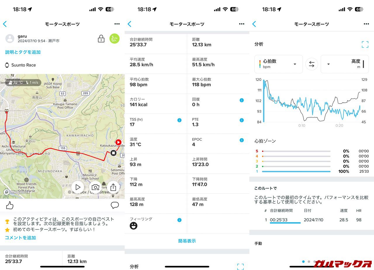 SUUNTO RACEはスポーツモードで測定したデータを確認できますが、スマホアプリでの表示がとても見やすい!