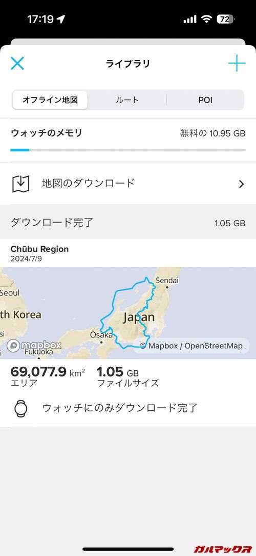 マップは日本だけでなく世界各国の地図データをダウンロードできるので、遠征の際に現地のマップをダウンロードして使えますが、容量には限りがあるので必要エリアのデータのみダウンロードするような使い方が良さげかと思います!