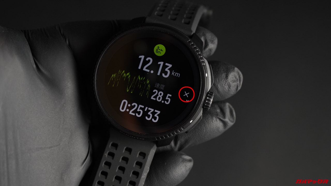 ▼画面の右側に✕の表示があるときはデジタルクラウンのプッシュが戻るの役割の時。↓