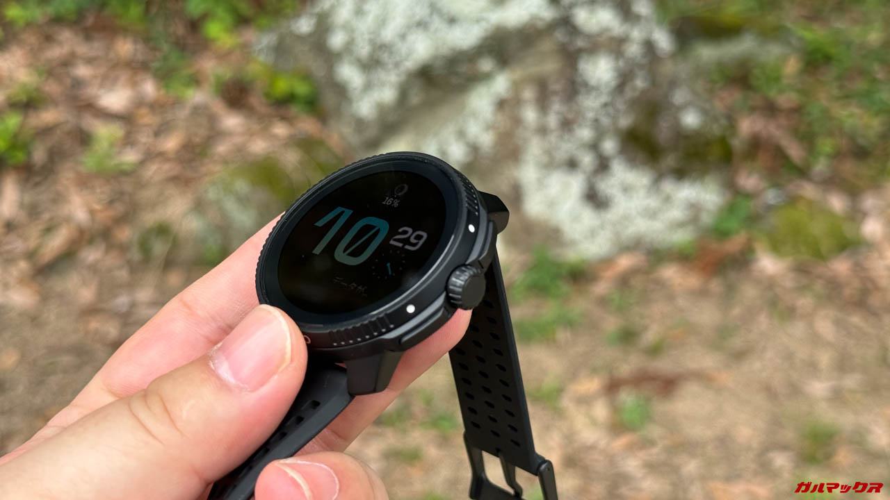 屋外でもより見やすくなった1,000nitのディスプレイや操作性の良いデジタルクラウンはSUUNTO VERTICALから進化したポイントですね。一方でソーラー充電機能は省かれております。