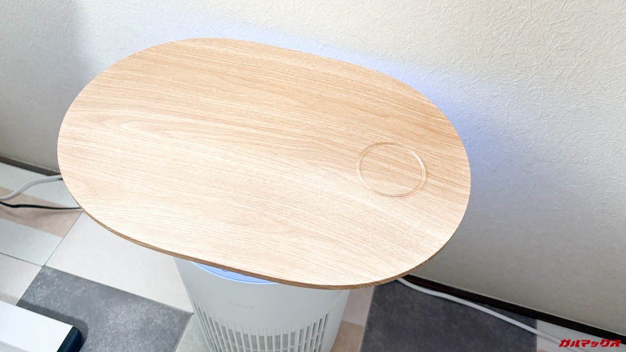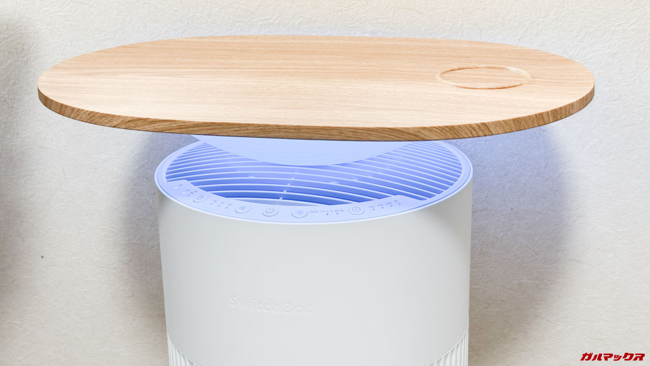 ▼一方でSwitchBot 空気清浄機Tableは、「テーブル」がくっついてます。見た目もナチュラルな木目調でお洒落。↓
