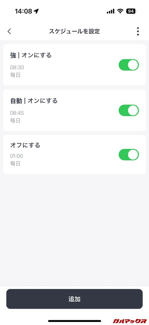 スケジュールはオンにするだけでなくオフも選べるようになっています。またスケジュール毎にどのモードで動かすのか選択もできます。