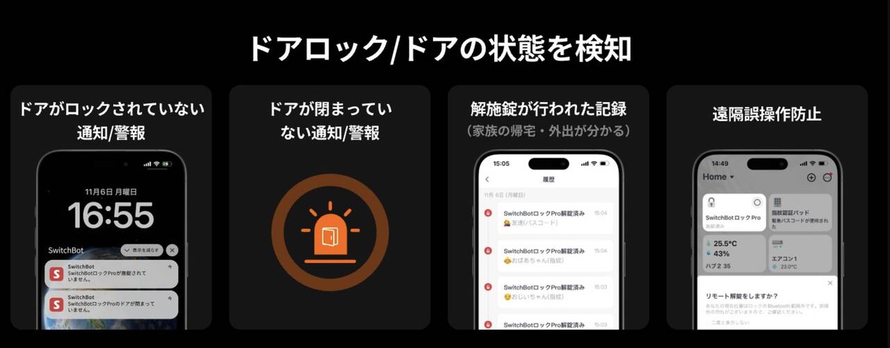▼「鍵をちゃんとかけたかな?」という不安も開け閉めの記録がアプリで確認できるのも超絶Good。↓