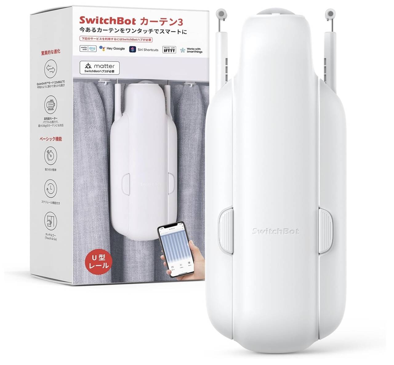 自動でカーテンを開閉してくれる大人気モデルのSwitchBot カーテン3もセール価格に!ちなみに通常価格は8,980円でございます。なおU型レールとポールタイプが選べるます!