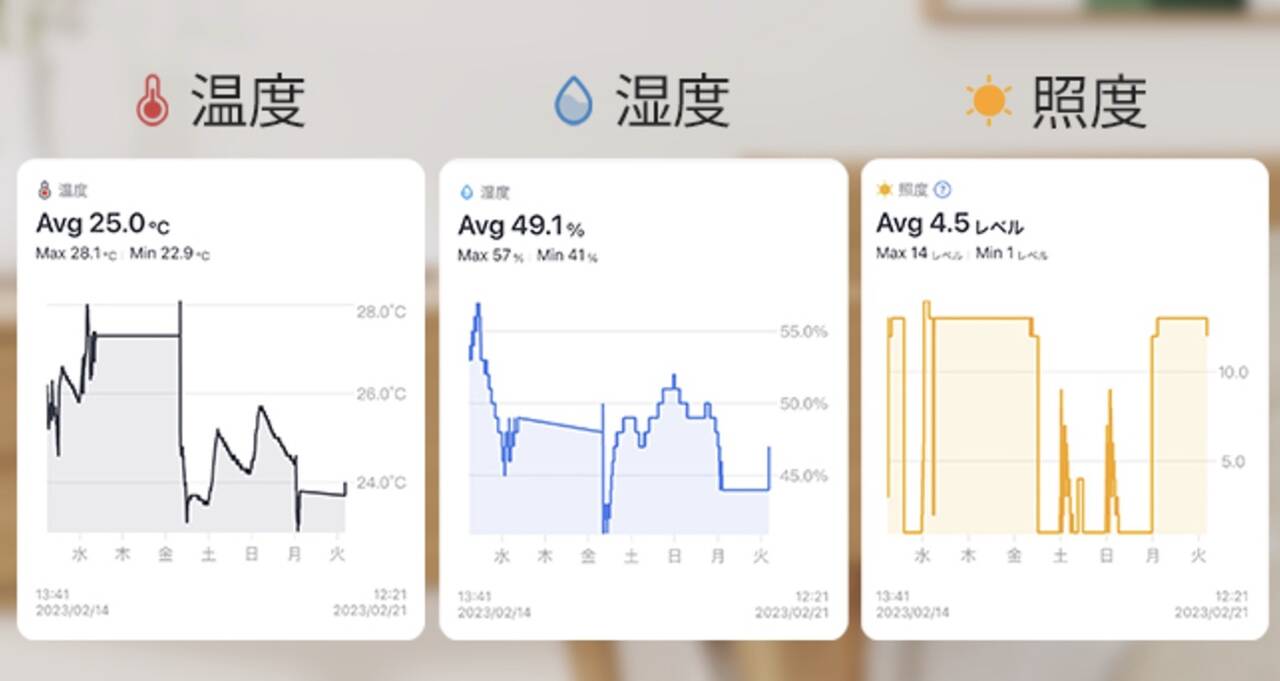 ▼本体には温度・湿度・照度センサーも内蔵していて常にデータ化。↓