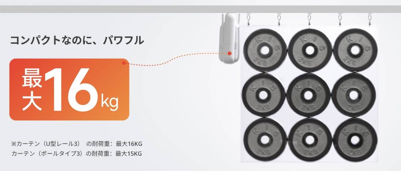 ▼最大16Kgまで対応するパワフルなモデルなのでほとんどのカーテンで使えそうですね〜!↓