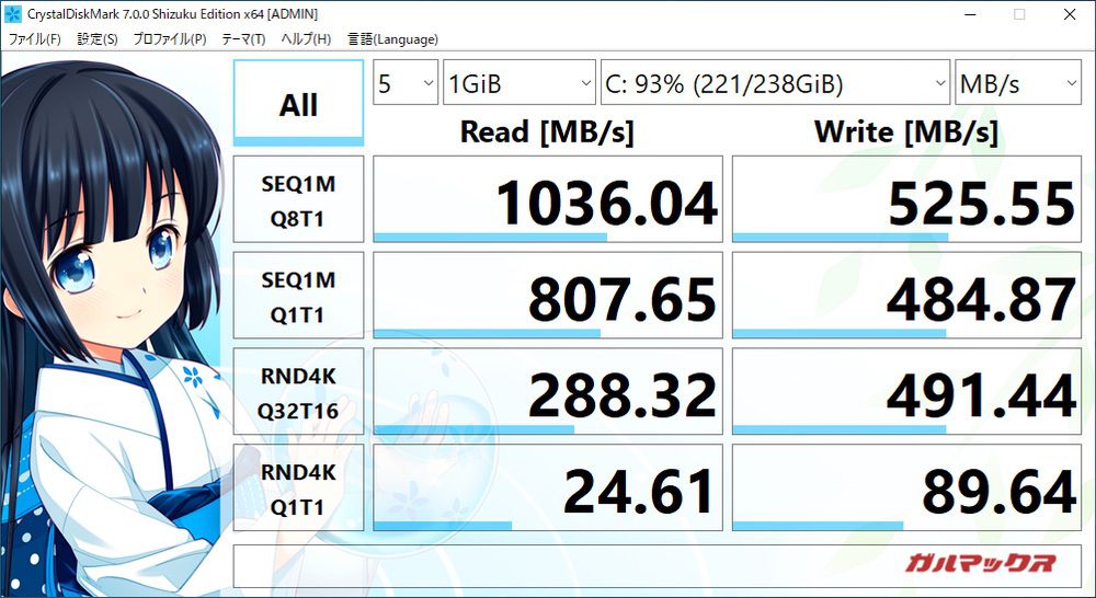 ▼ストレージの速度を測定したらこんな感じで結構速いね!↓