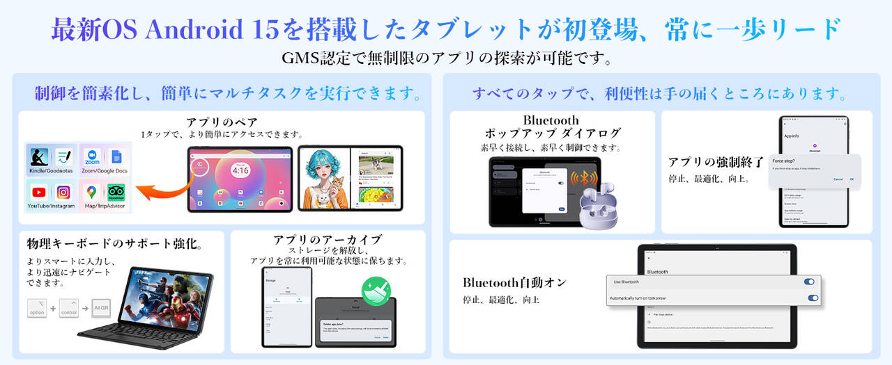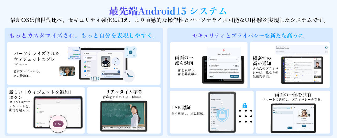 ▼搭載するOSは最新のAndroid 15!様々な最新OS機能を利用できるとのことです。↓