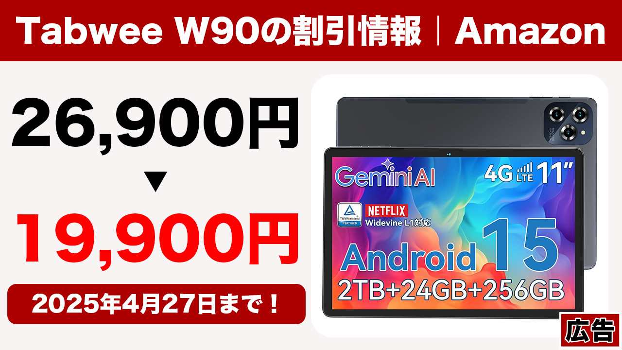 11型タブ「Tabwee W90」が26,900円→19,900円に割引中!4月27日まで!
