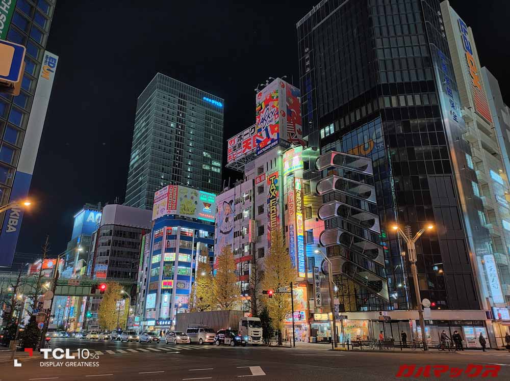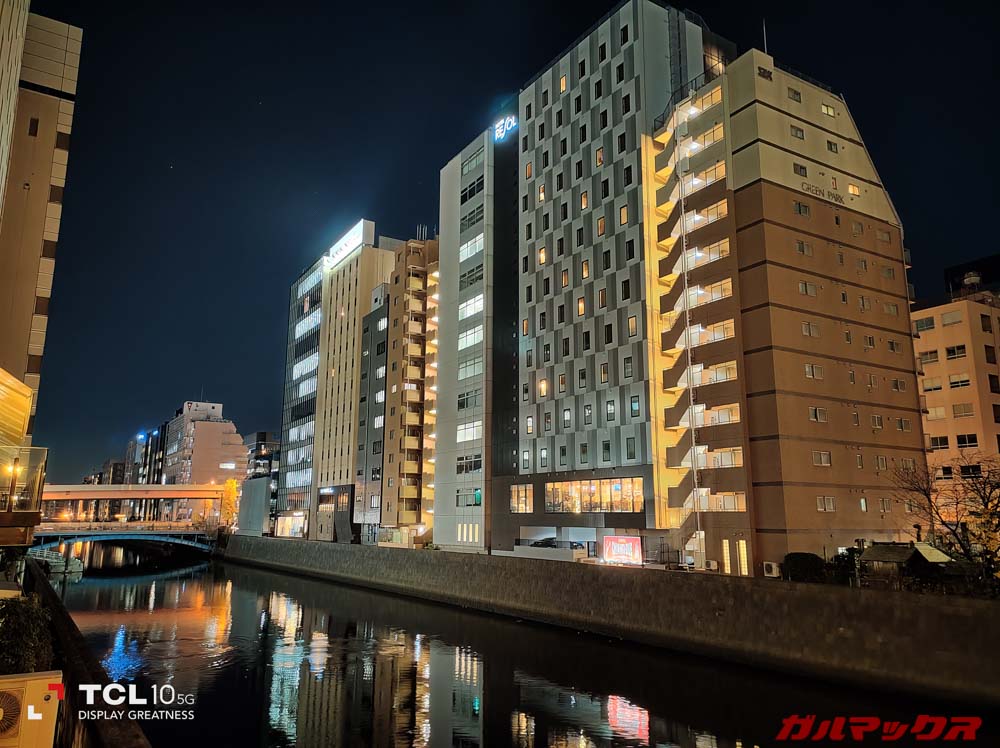 ▼TCL 10 5Gのディスプレイを通して閲覧した夜景撮影ではノイズが目立つが、これはNXTVISIONの画質調整で明るさが上げられた結果のもの。↓