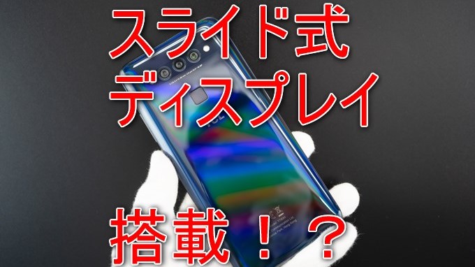 外観のカラーリングは前にレビューしたTCL PLEXのような美しいグラデーション外観っぽい!クアッドカメラ搭載で、フロントはパンチホールデュアルカメラが確認できます。ディスプレイ両端はエッジタイプで、スタイリッシュなイマドキのフラグシップスマホってスタイルっす。スライド式ってことを除けば。