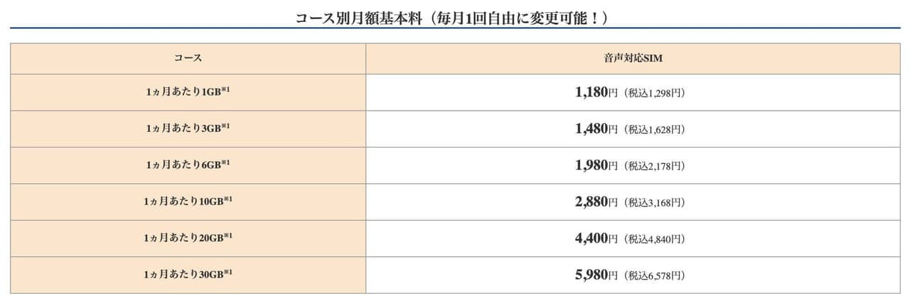 冒頭でもお伝えした通り今回の発売記念割引は「音声通話SIMとセット」で申し込まれた方を対象にしています。ちょうど2月〜3月は回線乗り換えシーズンなので利用料金も紹介しておきます。