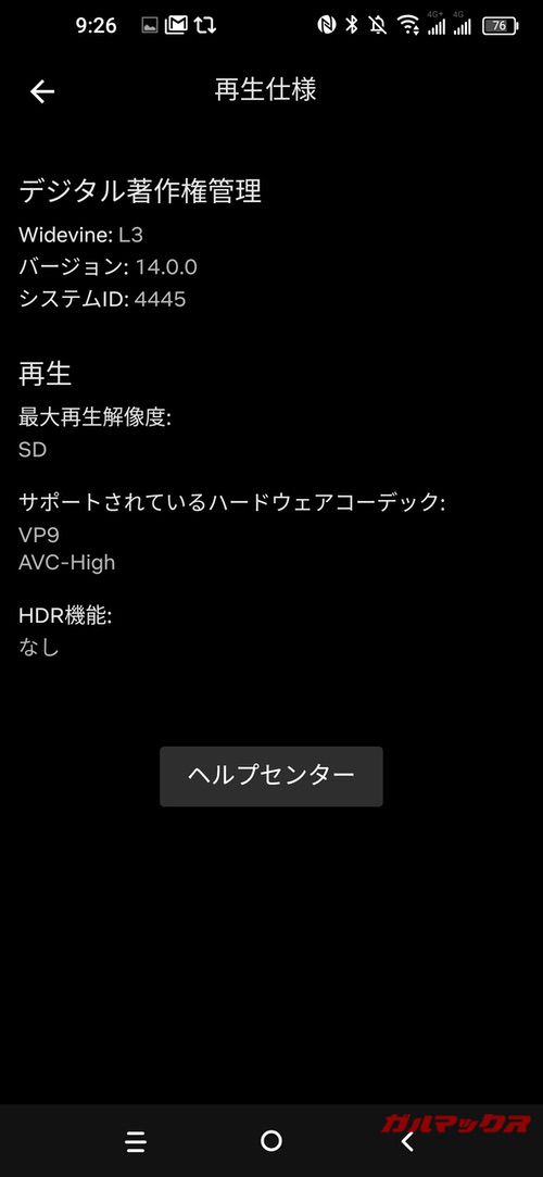 - WidevineがL3なのでAmazonプライムやNetflixなどDRMコンテンツはSD画質