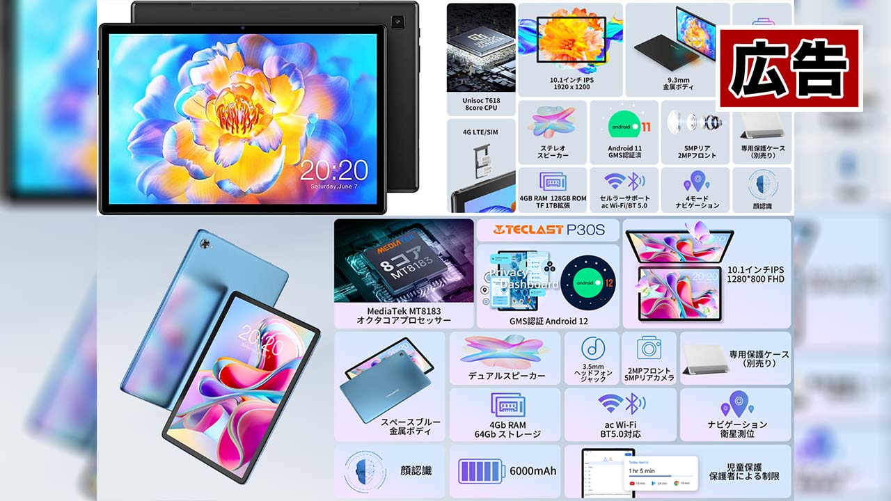1.5万円~!ミドル性能でGPS対応、TeclastのAndroidタブレット2種がAmazonでセール中!