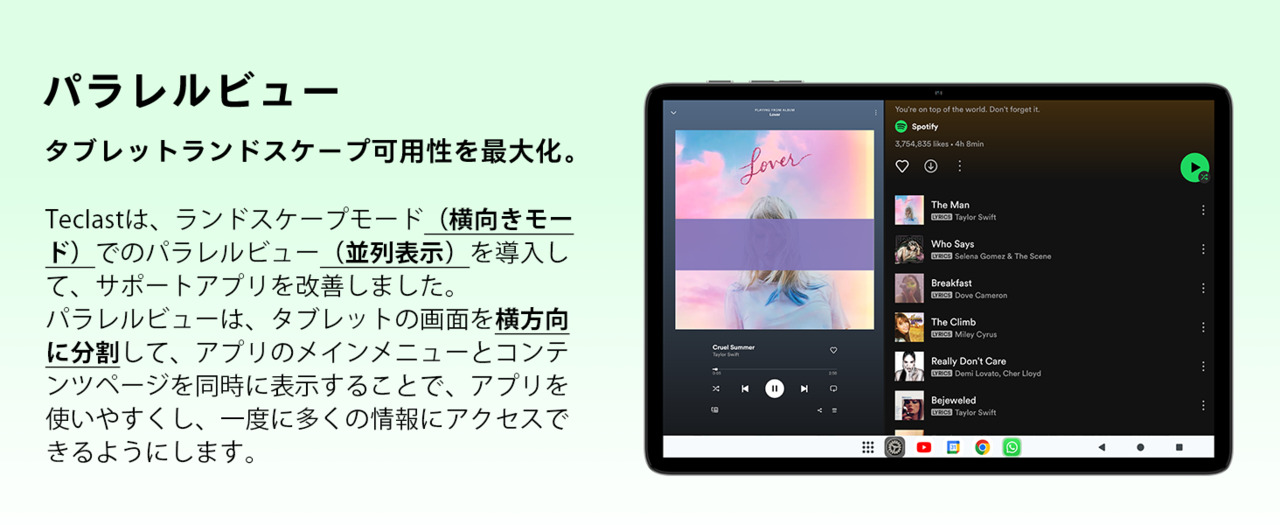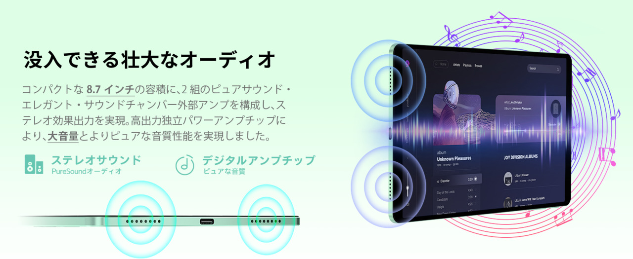 ▼スペックをおさらいすると、スペックはタブレットによく見かけられるUNISOC T606搭載でミドルレンジのスペックを持ち合わせます。日常使いこと動画視聴や電子書籍とかそういったあたりの使い方では不満なく使える感じ!↓