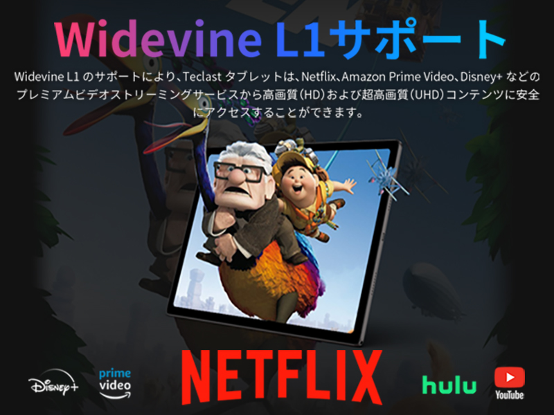 ▼ちなみにこのモデルはWidevine L1対応。なのでNetflixからプライムビデオなどの映画、アニメといった著作権コンテンツをHD画質で楽しむのにも応えられます(`・ω・´)。↓