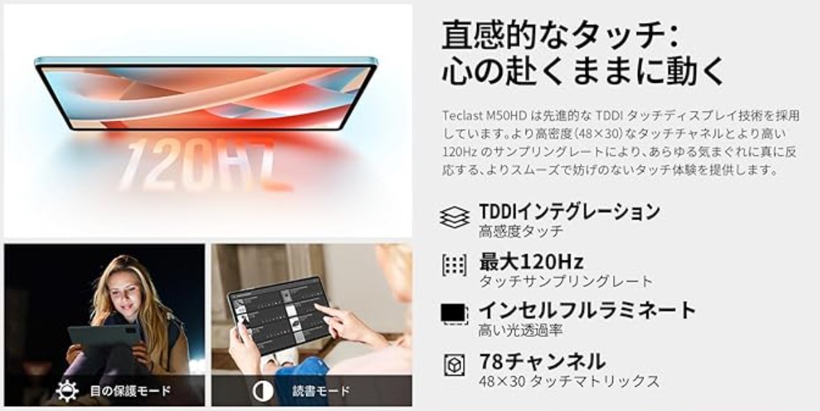 120Hz対応とありますがこれはタッチサンプリングレート(タッチの応答速度)であり、リフレッシュレート(ぬるぬる動くやつ)が120Hz対応ではないので注意。