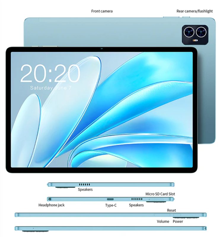 ▼Teclast M50S、デザインや触った感じの質感がけっこう良さげでした。カラーはブルーで、側面にかけてはフラットな形状となっており安っぽさは感じない印象を受けた!↓