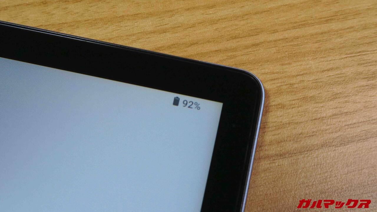 Teclast M50Sの電池持ちは並レベル。動画をずっと流してれば4~5時間ぐらいで電池残量が20%を下回るレベルです。充電速度も早いとはいえず、基本的には充電器につなぎながらの運用が基本となるでしょう。