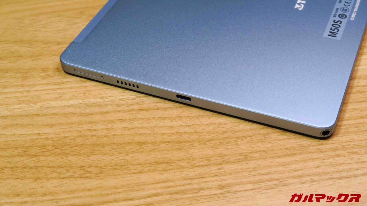 Teclast M50Sのスピーカーは2基搭載のデュアル式。タブレットとしてはベーシックなスタイルですが、音質自体は価格を考えると結構良さげでした。イヤホンジャックもあるし満足!