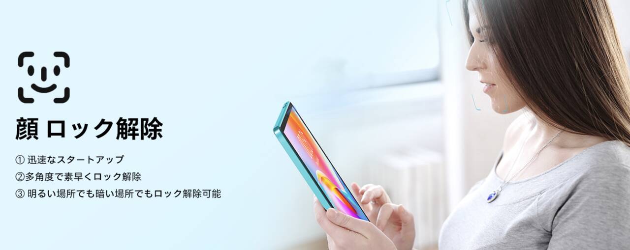 安価な製品だと生体認証が省かれていることが多いのよ。そうなると面倒なパスでのロック解除とかになるけど、Teclast P30 128GBはバッチリ顔認証に対応しているのがGood。
