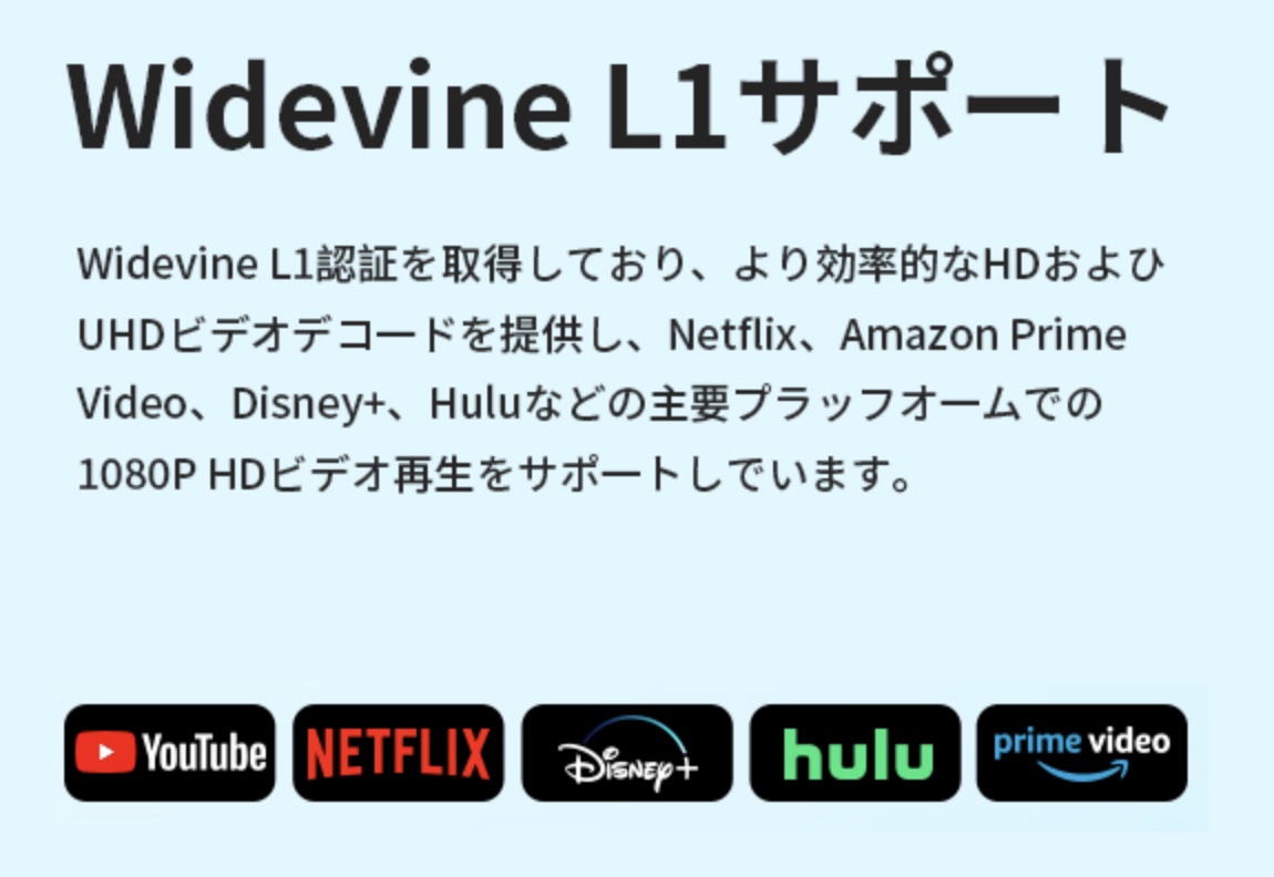 ▼動画視聴に関してはWidevine L1にも対応しているから、HDクラスの画質で再生OK!↓