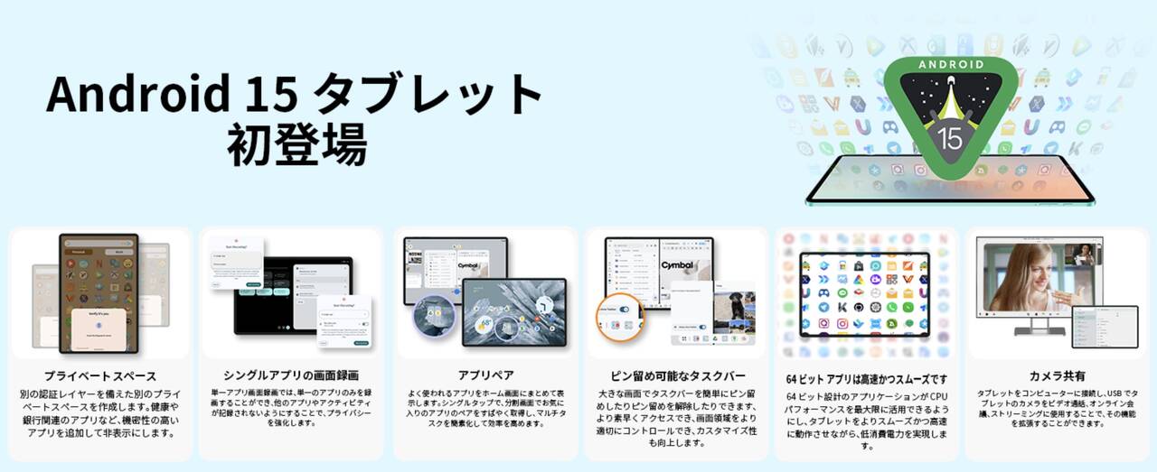 ▼あとOSは最新のAndroid 15を搭載。OS関連をイジって遊びたい人も楽しめそう。↓