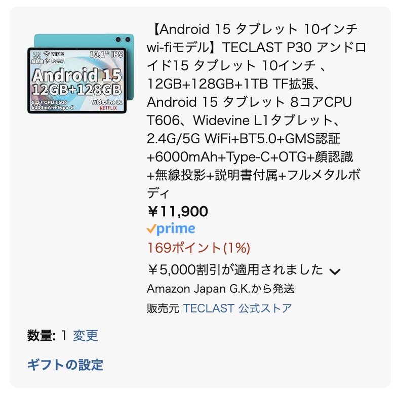 TeclastからAmazonで「10型タブのTeclast P30 128GBが安くなっているから紹介してくれ!」と連絡が来た。気になる価格は通常価格16,900円のところ3月7日まで5,000円オフの11,900円!!!5,000円も安くなってる!