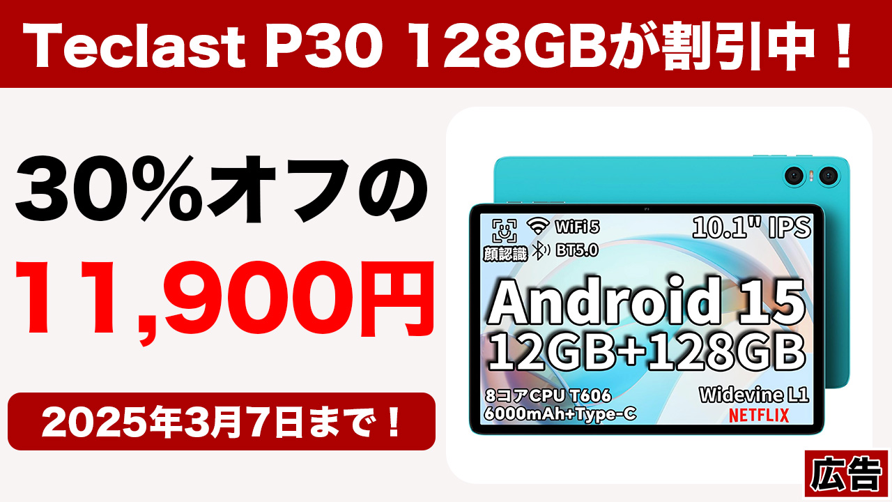▼という訳で、Teclast P30 128GBのお得情報でした!割引は2025年3月7日までのド短期なのでご検討はお早めに。購入先は以下から!↓