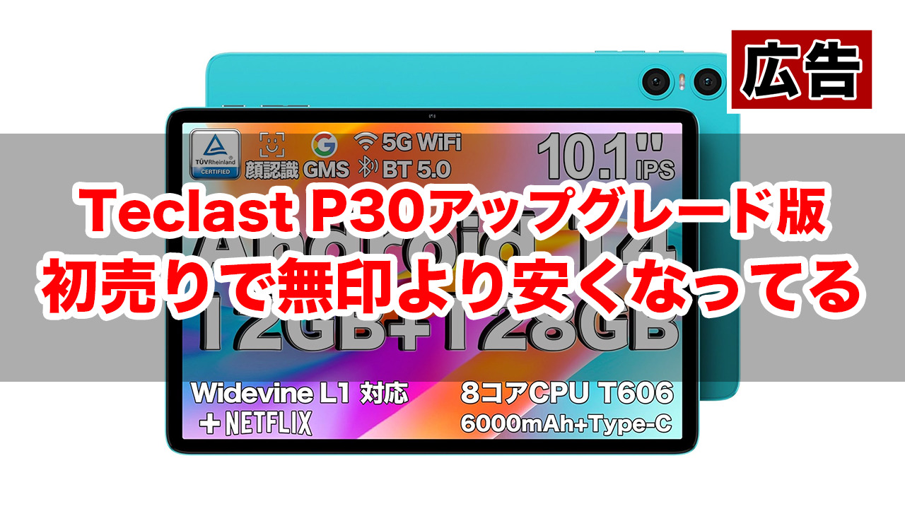 Teclast P30のアップグレード版は2024年9月12日23時59分まで初売りセール中!通常価格17,900円のところ10,900円で購入できるぞ!