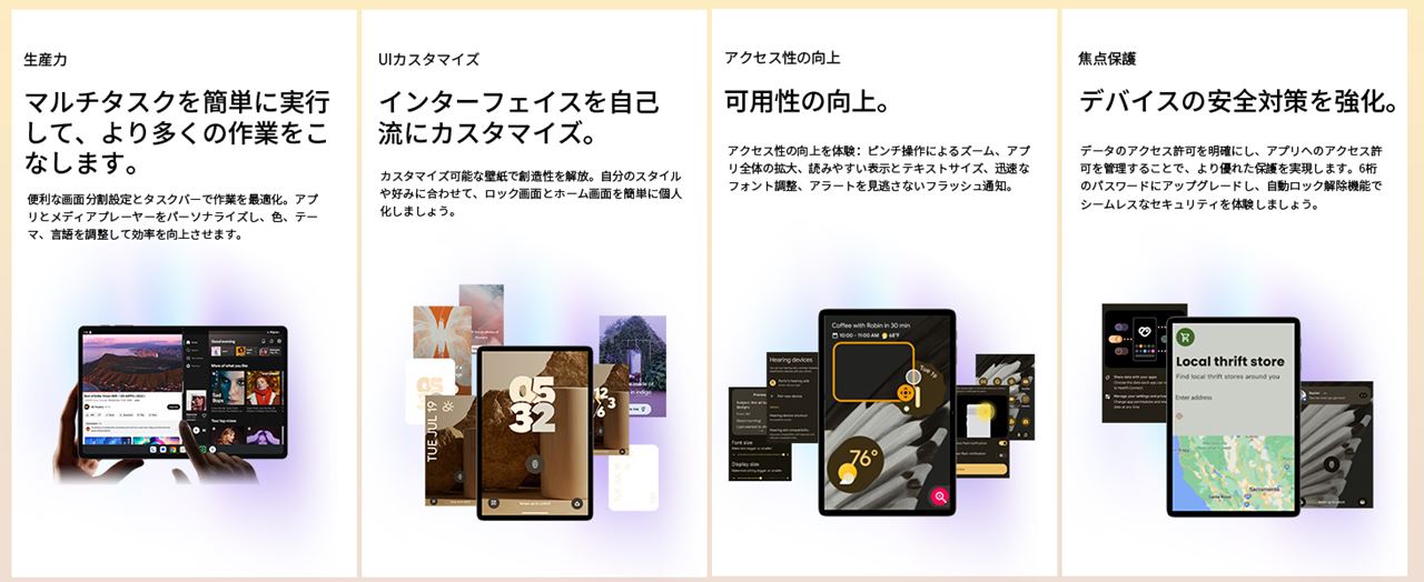 ▼14の新機能としてはロック画面のより細かなカスタマイズだったり、PINパスワードの使い勝手の向上など様々な点が改良されているとのこと。うーん気になる。↓