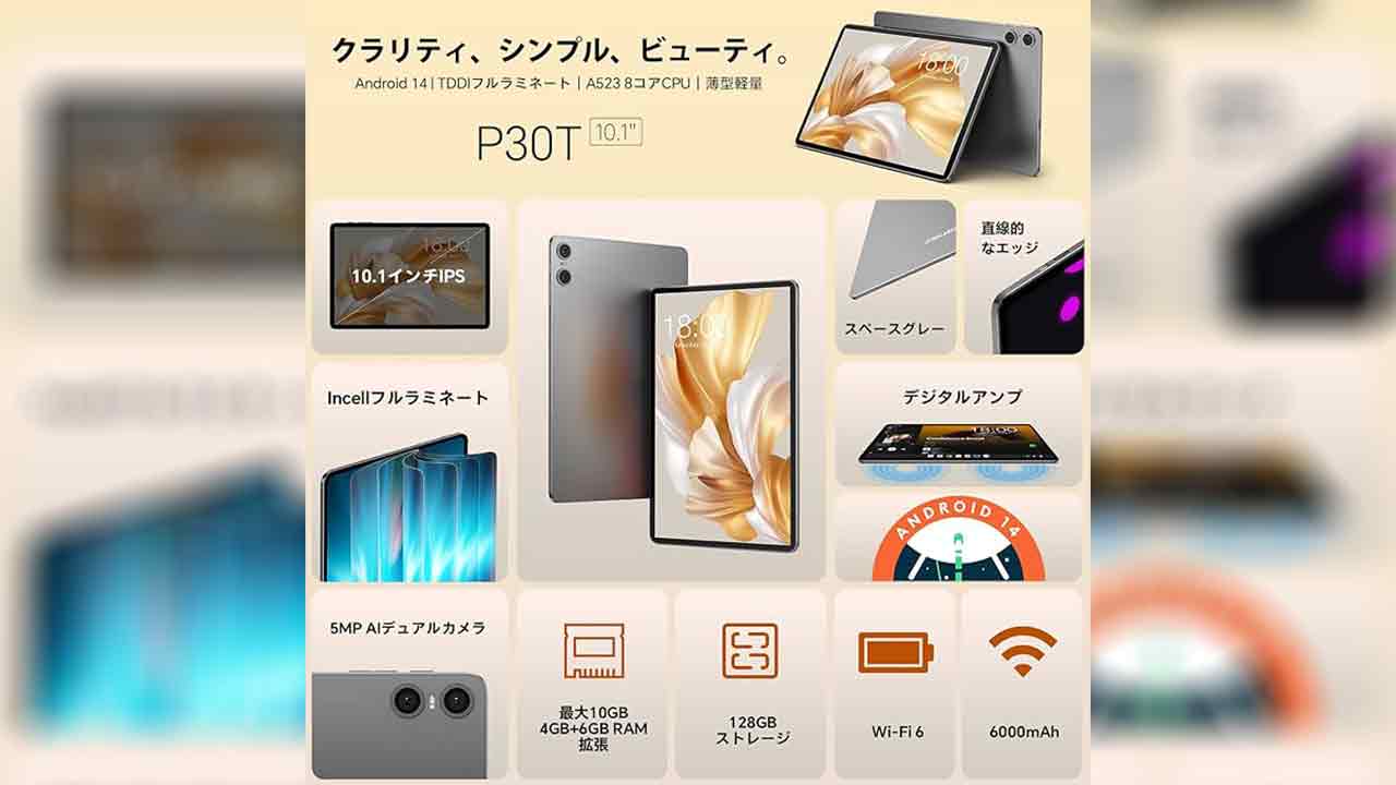 Teclast P30Tのスペックまとめ!Android 14搭載の10.1型エントリータブレット