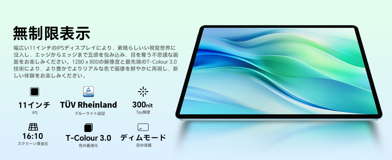 しかしその一方で解像度が低く1,280×800のHD+クラスなのは見逃せない欠点。8インチといった小型タブレットならまだしも、11インチという大きさでこの解像度なのでかなりドットの粗さは気になってきそうです。