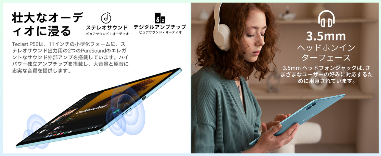 - デュアルスピーカーでイヤホンジャック端子搭載