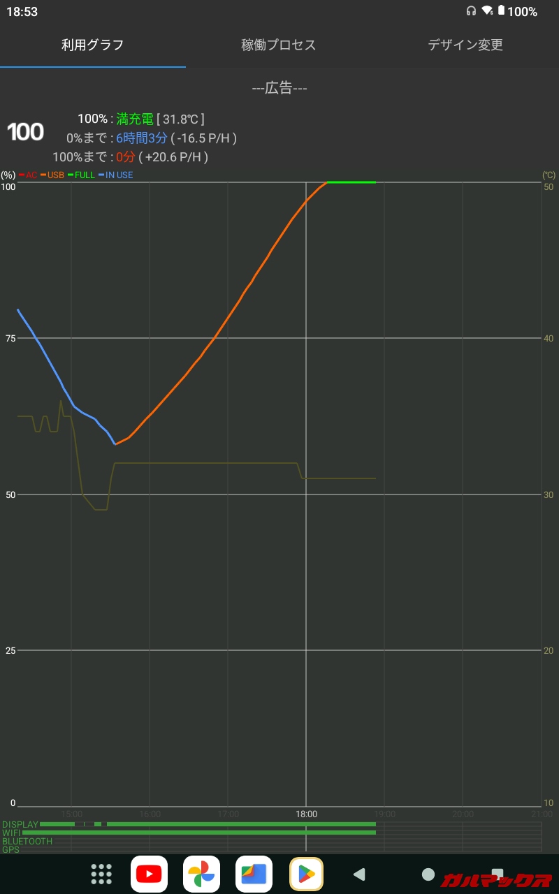 ガルマックス流のバッテリー検証。2時間の動画再生では20パーぐらい減りました。電池持ちも良くない。