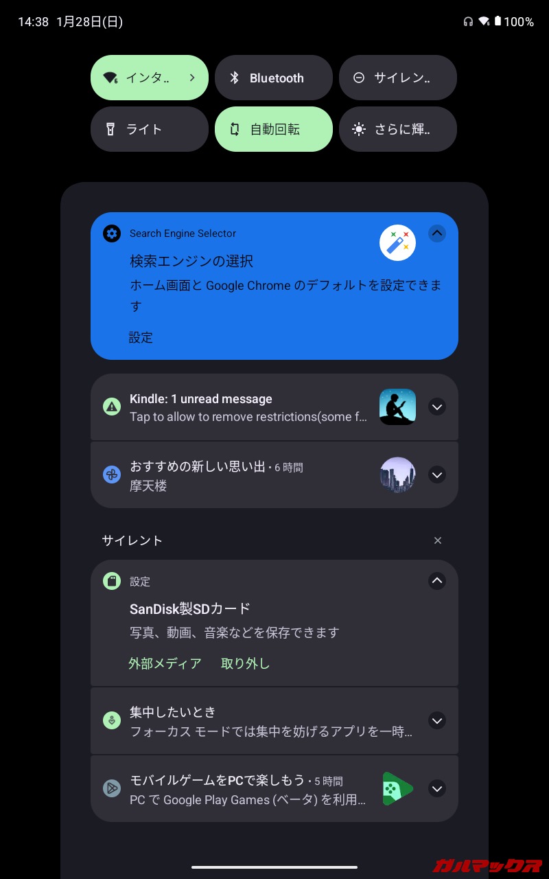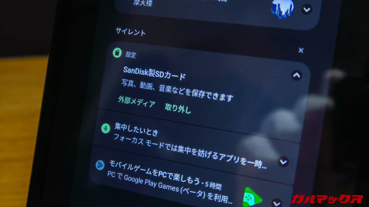 ▼ただなぜかわからんけど、SDカードさしたときの通知の表示が鬱陶しい。基本的にMicroSDを認識するときだけ出てくるんだけど、Teclast P85Tの場合は一定期間ごとにこのSDカード通知が表示されます。↓