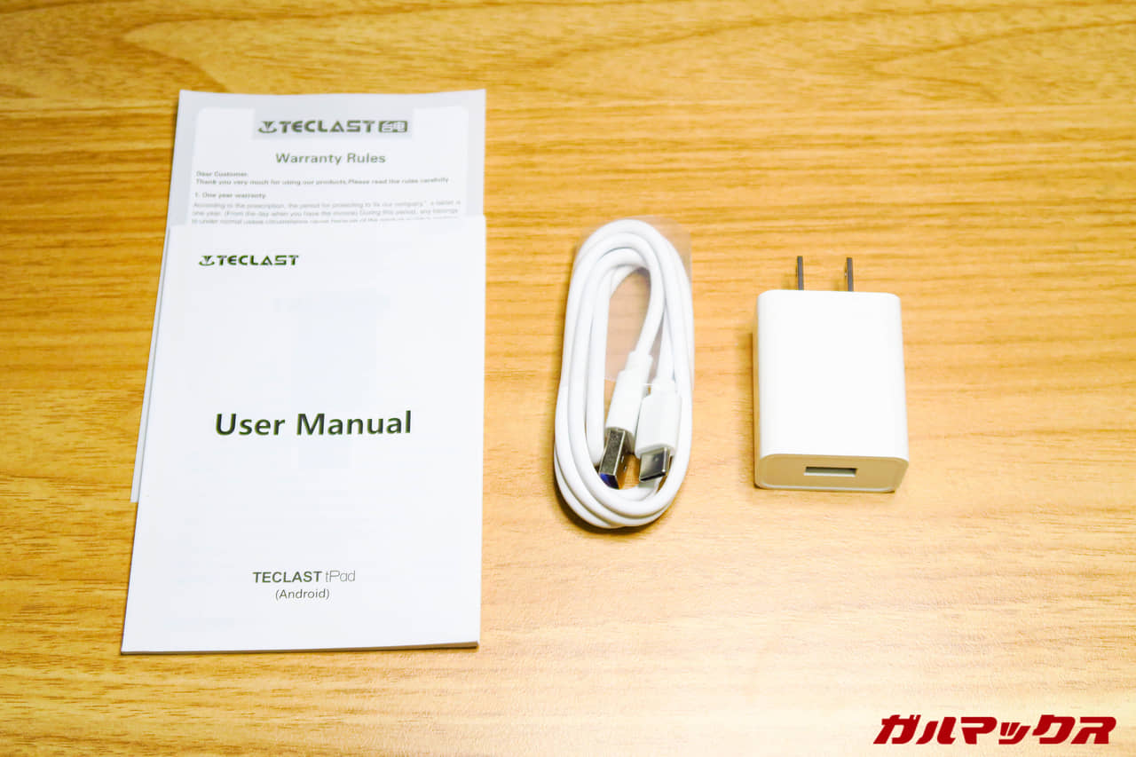 ▼Teclast P85Tの付属品はこんな感じでした!中華あるあるなんだけど、付属品がしっかり入っているし充電器もしっかり日本仕様にしているのは偉すぎる。↓
