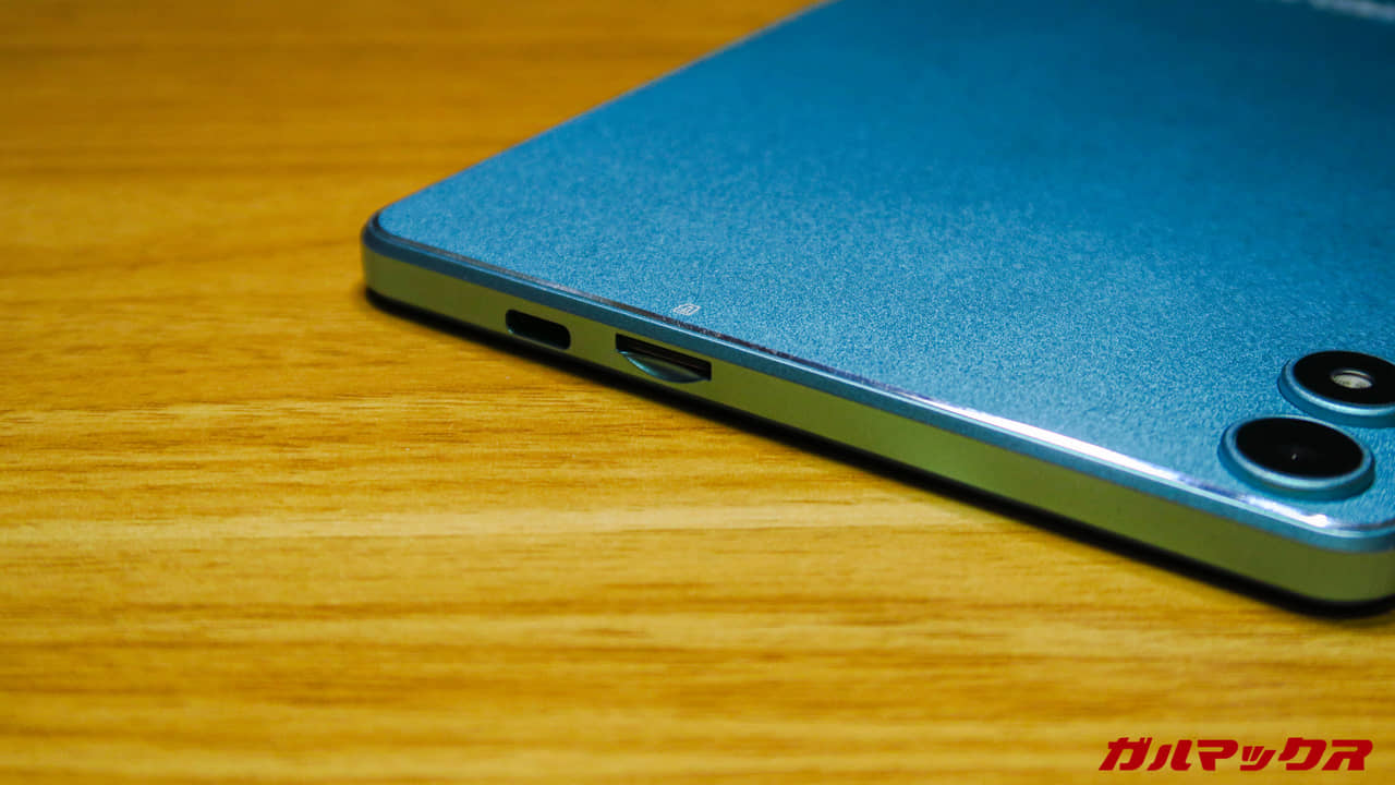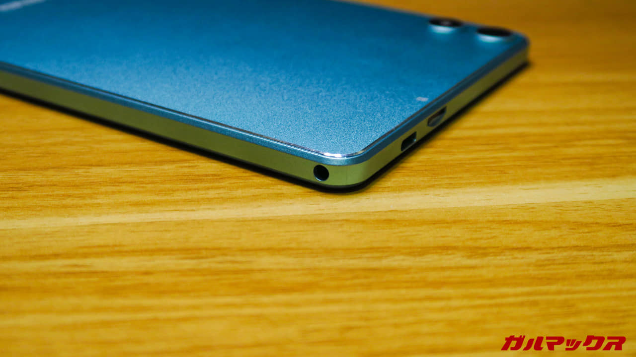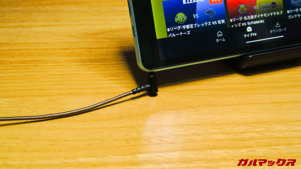 イヤホンジャック端子があるのは救いなんだけど、配置が終わってます。縦向けだったら良いんだけど、横に倒した場合は下部に面してしまうためL型端子でもなければ床にぶつかるんすよ。
