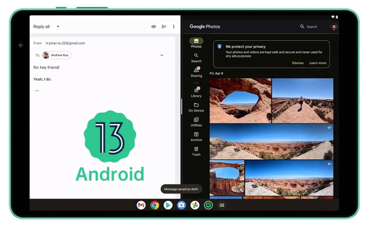 ▼ソフトウェアはAndroid 13で、タブレット向けにUIが最適化されているのもGood!下部にタスクバーが配置されておりお気に入りのアプリをサクッと開けるのも魅力といえます。↓